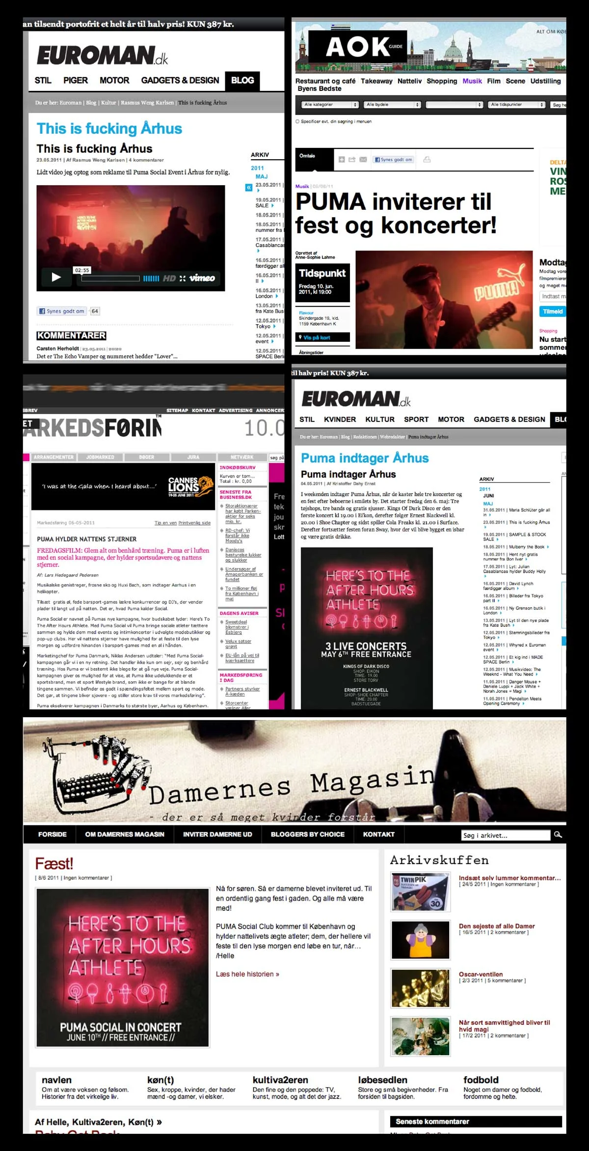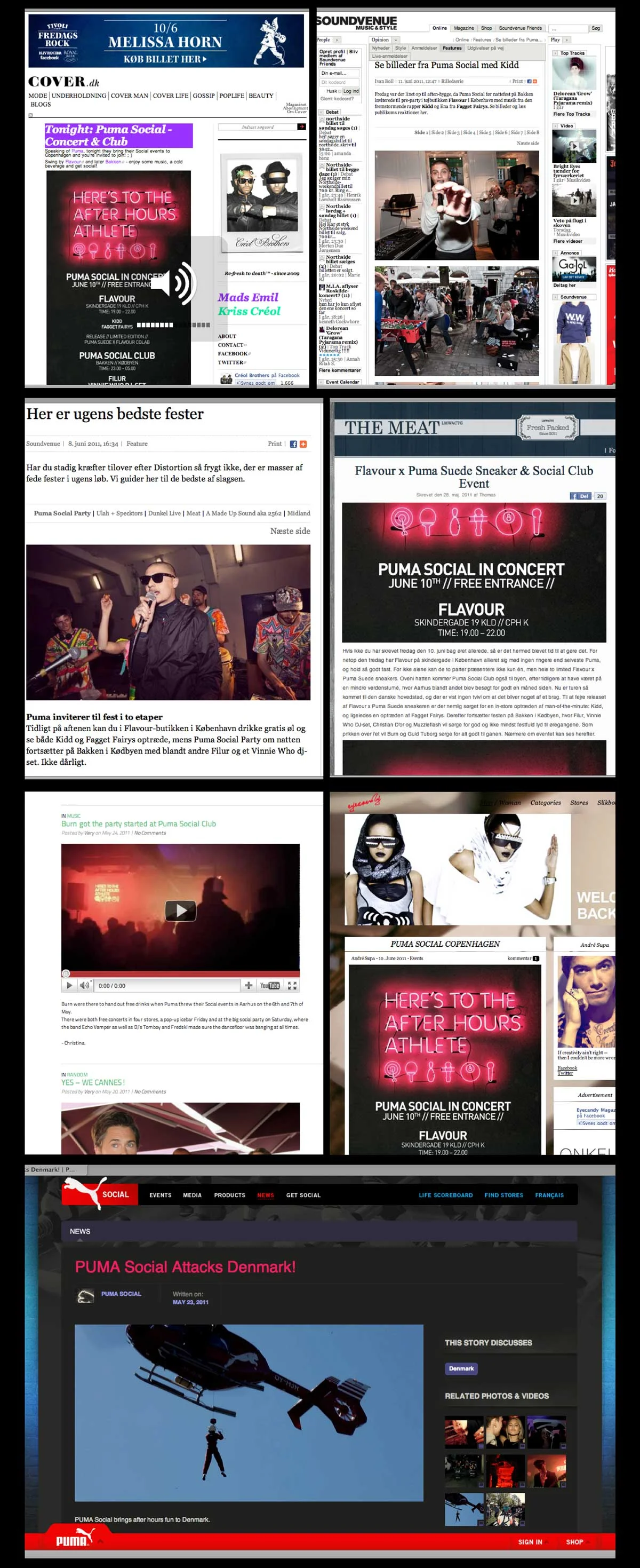 PUMA efterspurgte effektiv branding via stærk imageoverførsel fra segmentet af trendsættere og first movere. I samarbejde med reklamebureauet Openminded, var jeg hoveddesigner af den danske del af en af PUMAs verdensomspændende PUMA SOCIAL KAMPAGNE. Kampagnen endte med omtale fra Eurowoman og Euroman, og blev det mest læste i "Alt Om København".